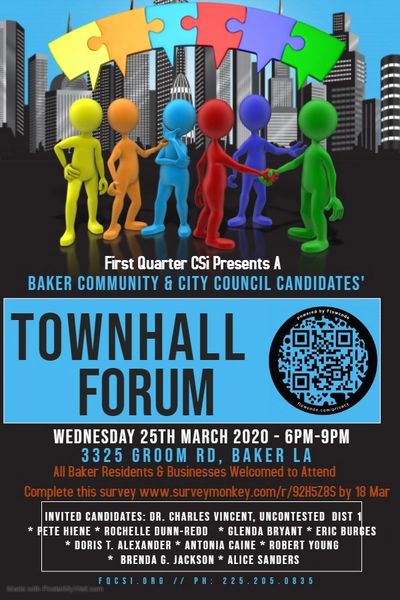 Baker Residents and Local businesses are invted to come out to the Town Hall Forum to hear the candidates for Baker City Council on 25 Mar 20 from 6:00p - 9:00p.